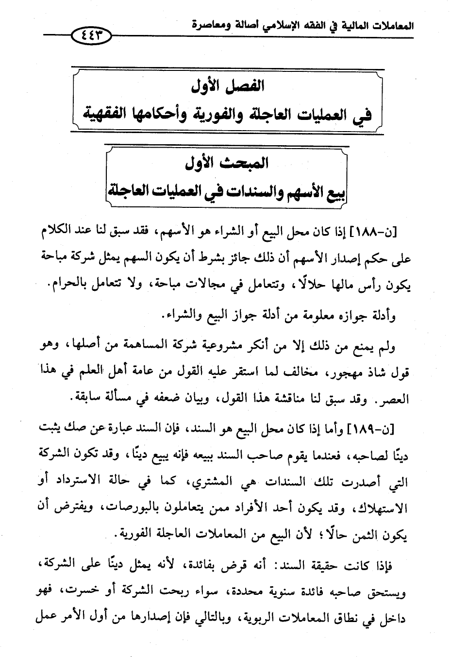 المبحث الأول بيع الأسهم والسندات في العمليات العاجلة