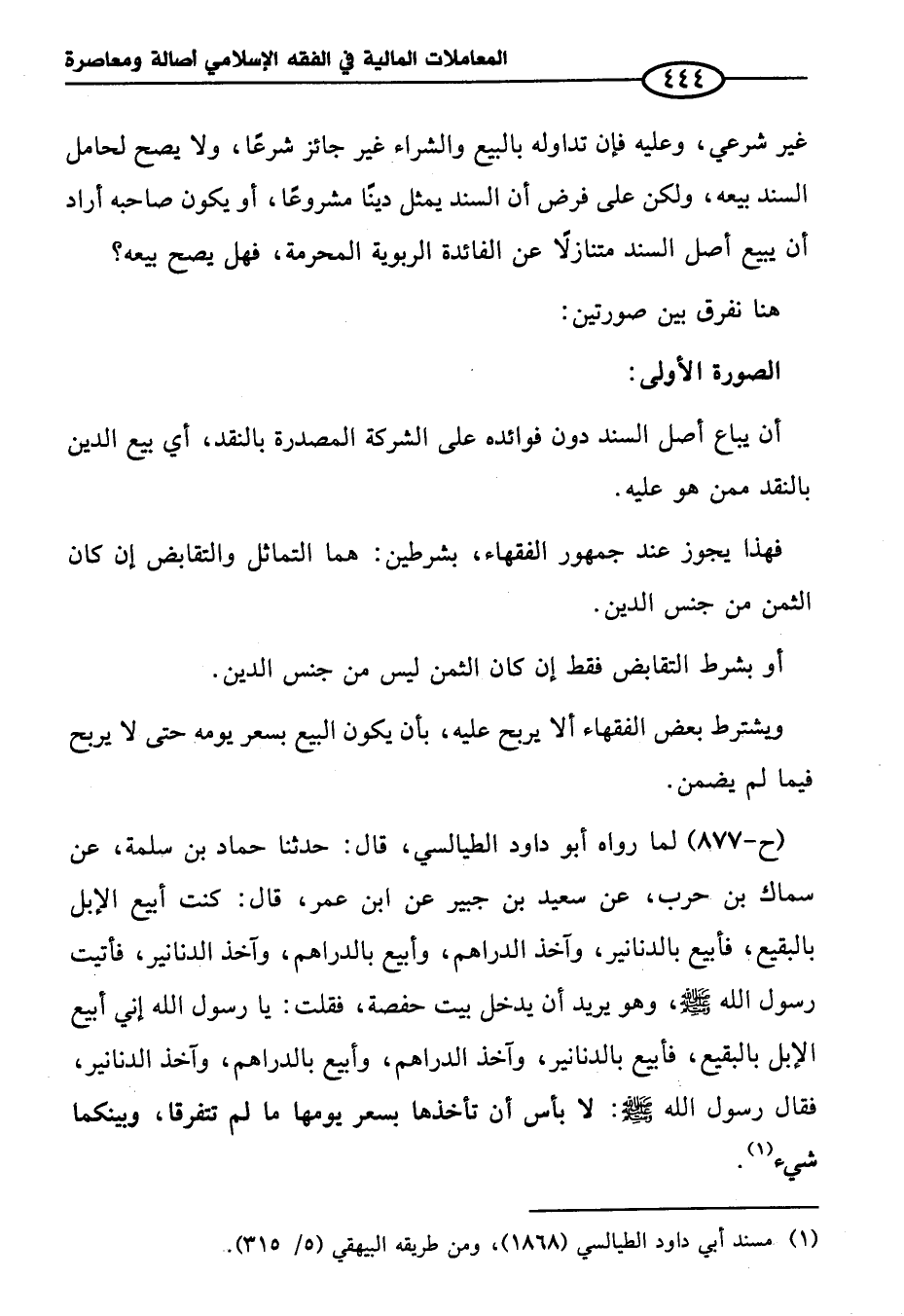 أن يباع أصل السند دون فوائده على الشركة المصدرة بالنقد، أي بيع الدين بالنقد ممن هو عليه.