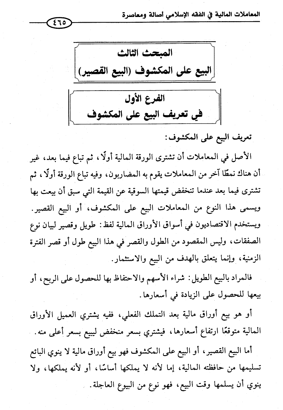 المبحث الثالث البيع على المكشوف (البيع القصير)