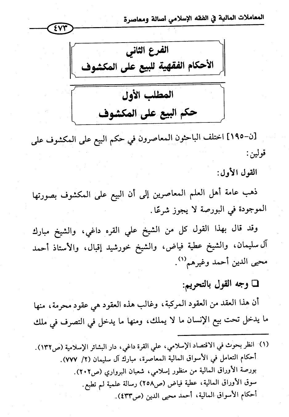 أحكام الأسواق المالية، أحمد محيى الدين (ص ٤٣٣).