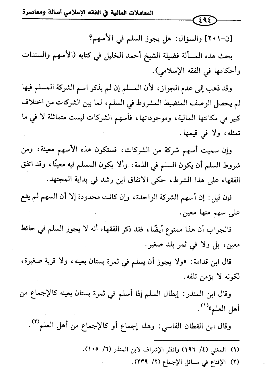 [ن - ٢٠١] والسؤال: هل يجوز السلم في الأسهم؟