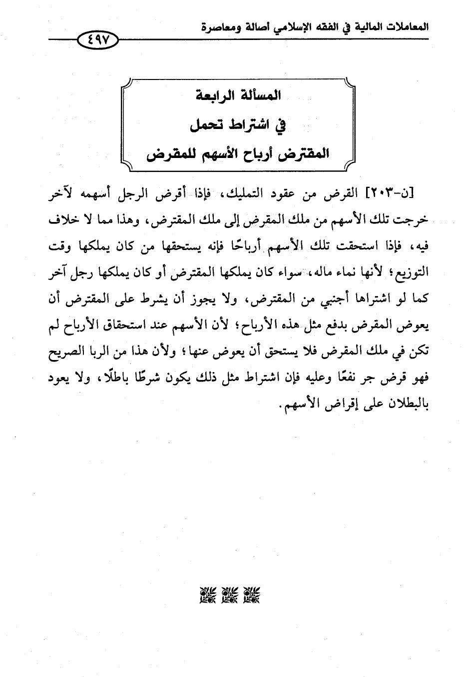 المسألة الرابعة في اشتراط تحمل المقترض أرباح الأسهم للمقرض