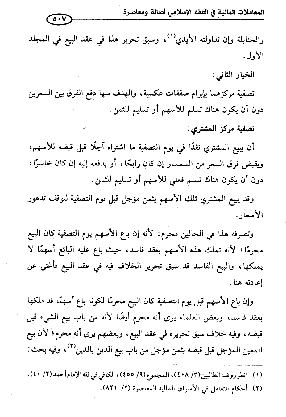 (¬٢) أحكام التعامل في الأسواق المالية المعاصرة (٢/ ٨٢١).