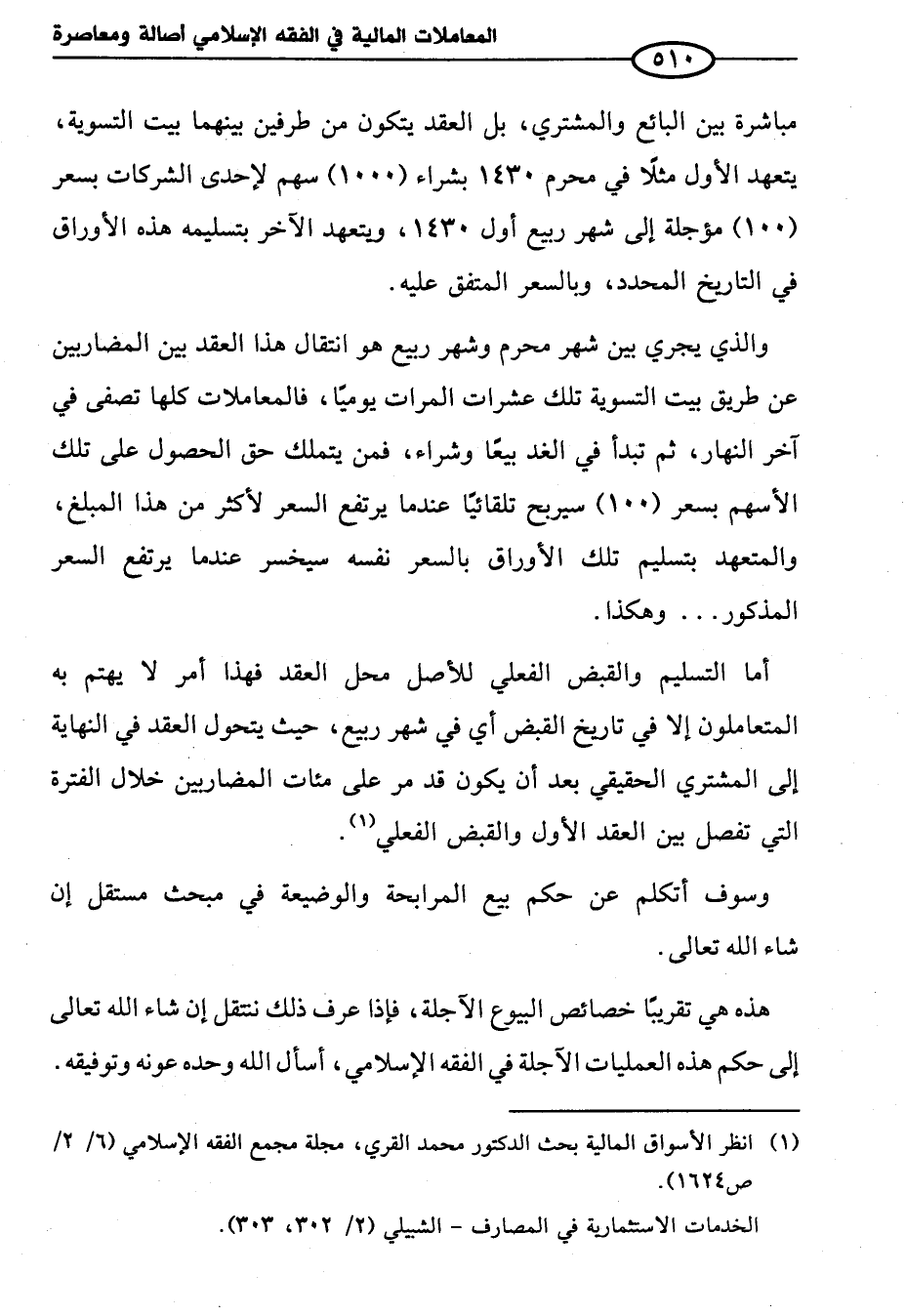 (¬١) انظر الأسواق المالية بحث الدكتور محمَّد القري، مجلة مجمع الفقه الإِسلامي (٦/ ٢/ ص ١٦٢٤).