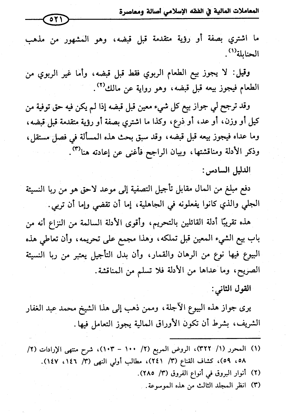 هذه تقريبًا أدلة القائلين بالتحريم، وأقوى الأدلة السالمة من النزاع أنه من باب بيع الشيء المعين قبل تملكه، وهذا مجمع على تحريمه، وأن تعاطي هذه البيوع فيها نوع من الرهبان والقمار، وأن بدل التأجيل يعتبر من ربا النسيئة الصريح، وما عداها من الأدلة فلا تسلم من المناقشة.