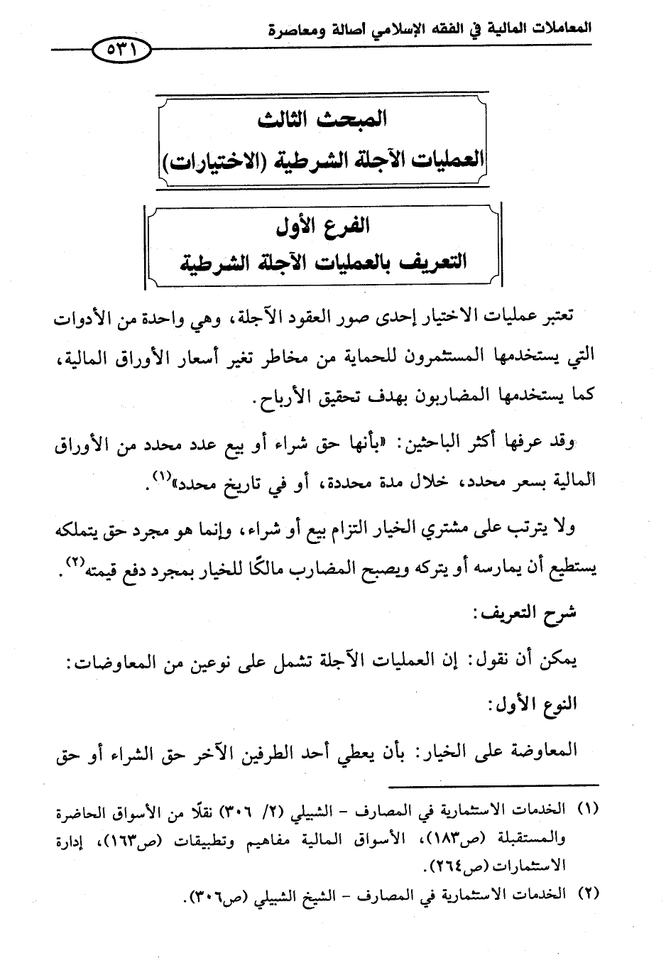 (¬١) الخدمات الاستثمارية في المصارف - الشبيلي (٢/ ٣٠٦) نقلًا من الأسواق الحاضرة والمستقبلة (ص ١٨٣)، الأسواق المالية مفاهيم وتطبيقات (ص ١٦٣)، إدارة الاستثمارات (ص ٢٦٤).