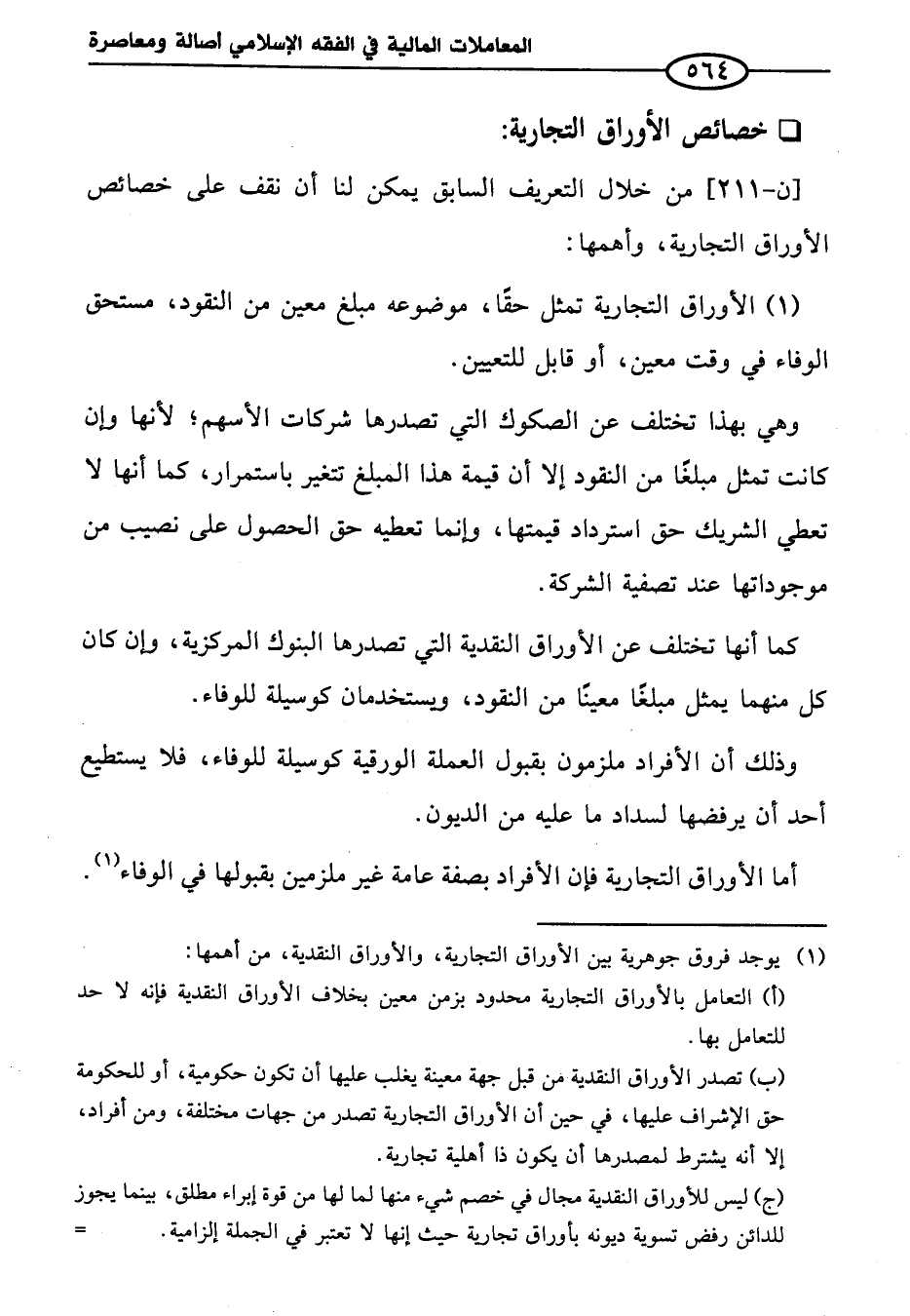 [ن - ٢١١] من خلال التعريف السابق يمكن لنا أن نقف على خصائص الأوراق التجارية، وأهمها: