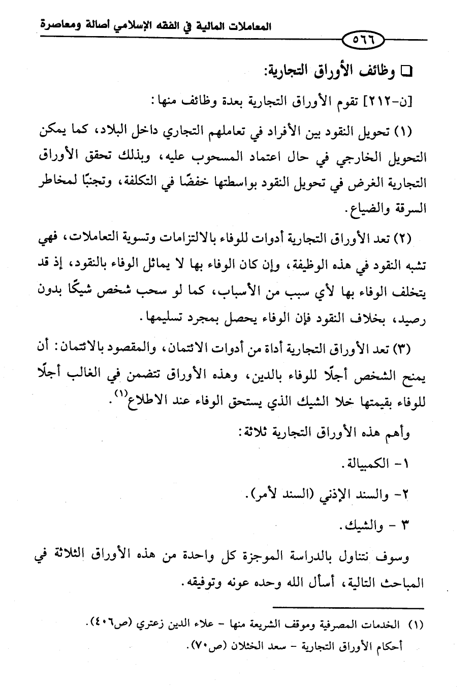 [ن -٢١٢] تقوم الأوراق التجارية بعدة وظائف منها: