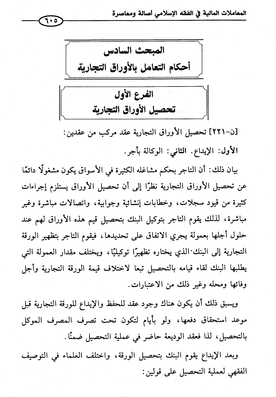 [ن - ٢٢١] تحصيل الأوراق التجارية عقد مركب من عقدين: