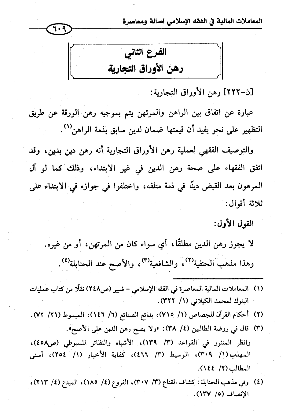 [ن -٢٢٢] رهن الأوراق التجارية:
