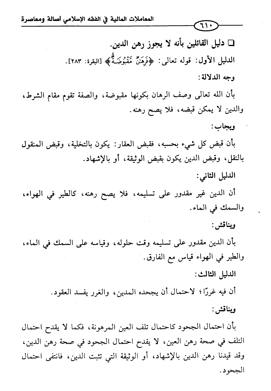 الدليل الأول: قوله تعالى: {فَرِهَانٌ مَقْبُوضَةٌ} [البقرة: ٢٨٣].