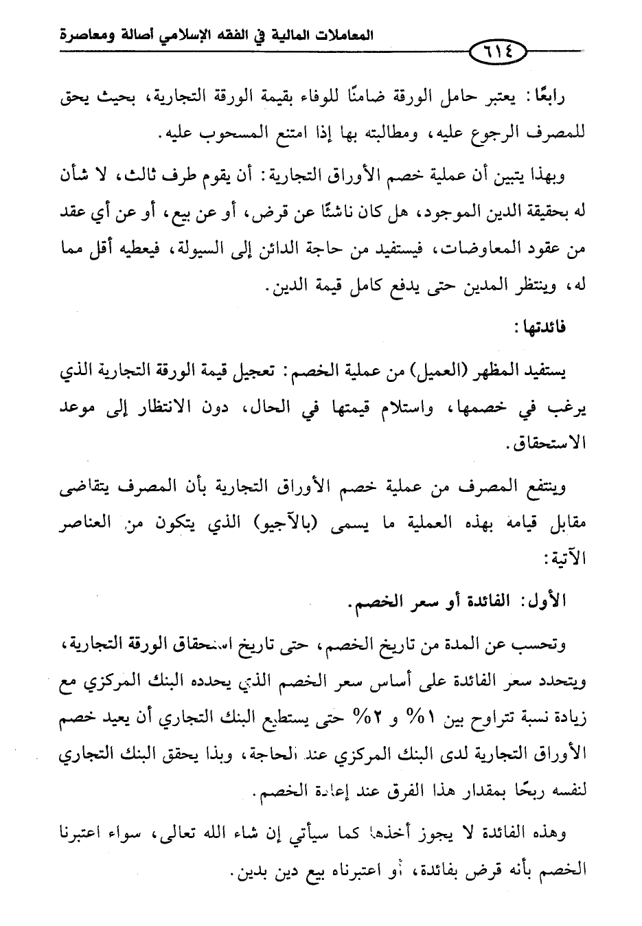وبهذا يتبين أن عملية خصم الأوراق التجارية: أن يقوم طرف ثالث، لا شأن له بحقيقة الدين الموجود، هل كان ناشئًا عن قرض، أو عن بيع، أو عن أي عقد من عقود المعاوضات، فيستفيد من حاجة الدائن إلى السيولة، فيعطيه أقل مما له، وينتظر المدين حتى يدفع كامل قيمة الدين.