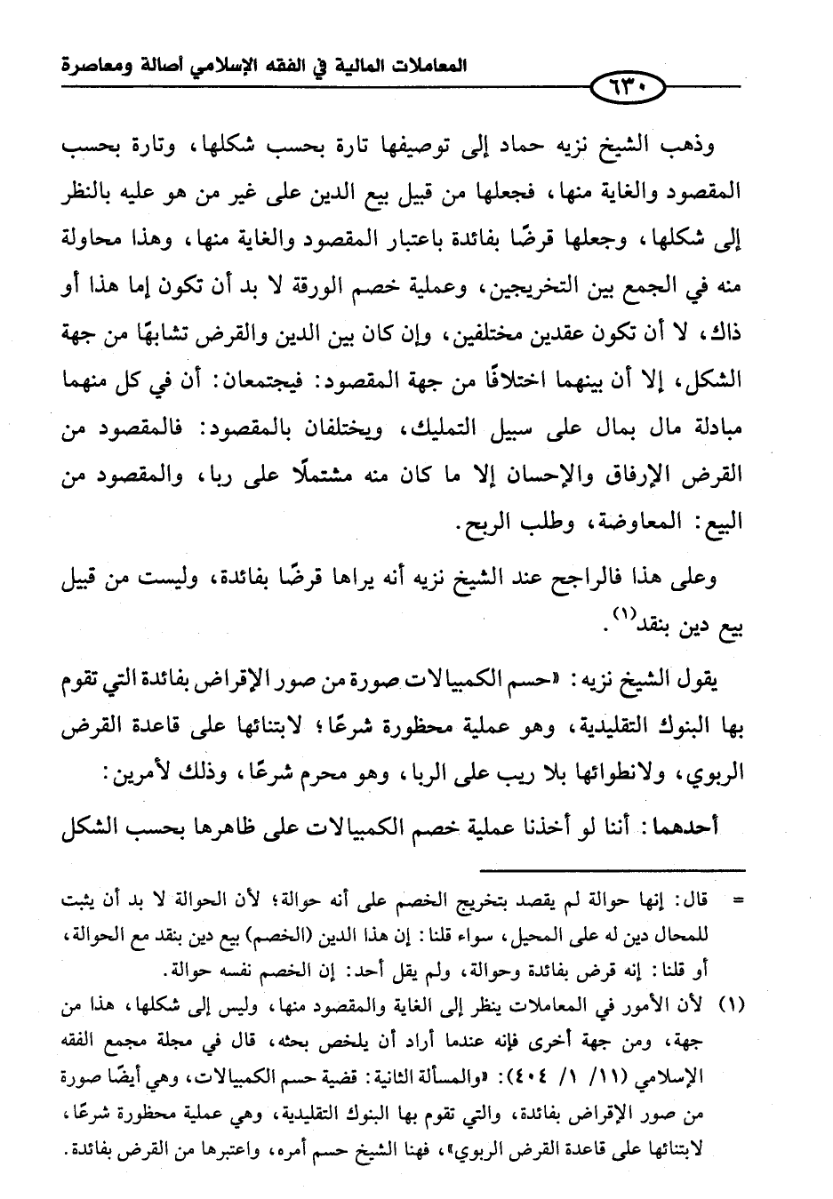 (¬١) لأن الأمور في المعاملات ينظر إلى الغاية والمقصود منها , وليس إلى شكلها، هذا من جهة، ومن جهة أخرى فإنه عندما أراد أن يلخص بحثه، قال في مجلة مجمع الفقه الإِسلامي (١١/ ١/ ٤٠٤): "والمسألة الثانية: قضية حسم الكمبيالات، وهي أيضًا صورة من صور الإقراض بفائدة، والتي تقوم بها البنوك التقليدية، وهي عملية محظورة شرعًا، لابتنائها على قاعدة القرض الربوي"، فهنا الشيخ حسم أمره، واعتبرها من القرض بفائدة.