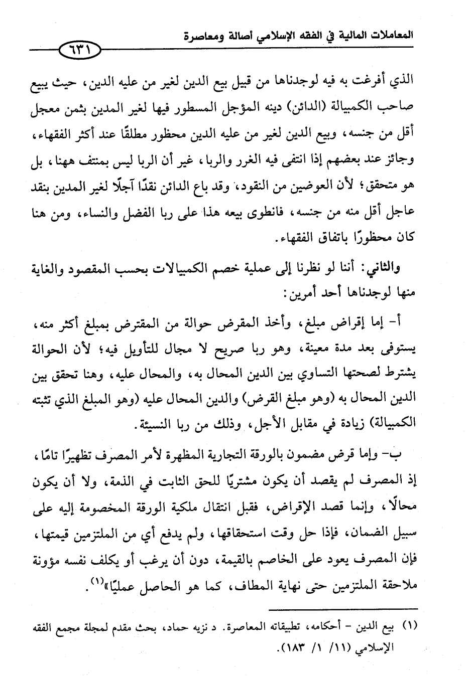 (¬١) بيع الدين - أحكامه، تطبيقاته المعاصرة. د. نزيه حماد، بحث مقدم لمجلة مجمع الفقه الإِسلامي (١١/ ١/ ١٨٣).