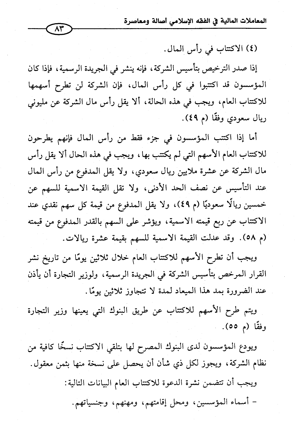 (٤) الاكتتاب في رأس المال.
