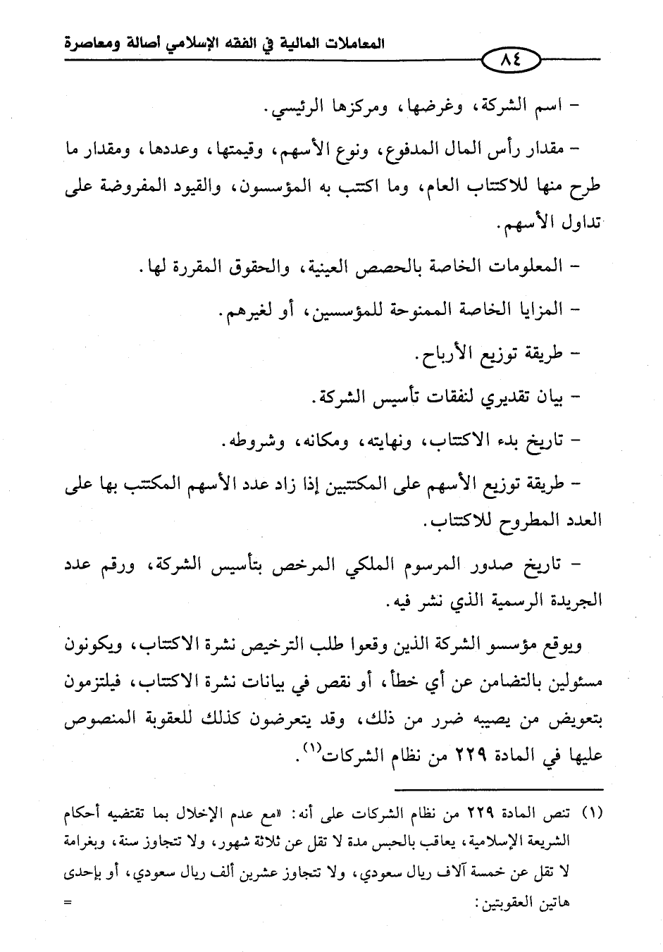 (¬١) تنص المادة ٢٢٩ من نظام الشركات على أنه: "مع عدم الإخلال بما تقتضيه أحكام الشريعة الإِسلامية، يعاقب بالحبس مدة لا تقل عن ثلاثة شهور، ولا تتجاوز سنة، وبغرامة لا تقل عن خمسة آلاف ريال سعودي، ولا تتجاوز عشرين ألف ريال سعودي، أو بإحدى هاتين العقوبتين: =