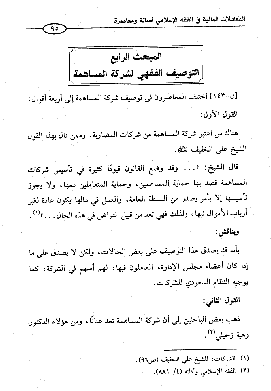 المبحث الرابع التوصيف الفقهي لشركة المساهمة