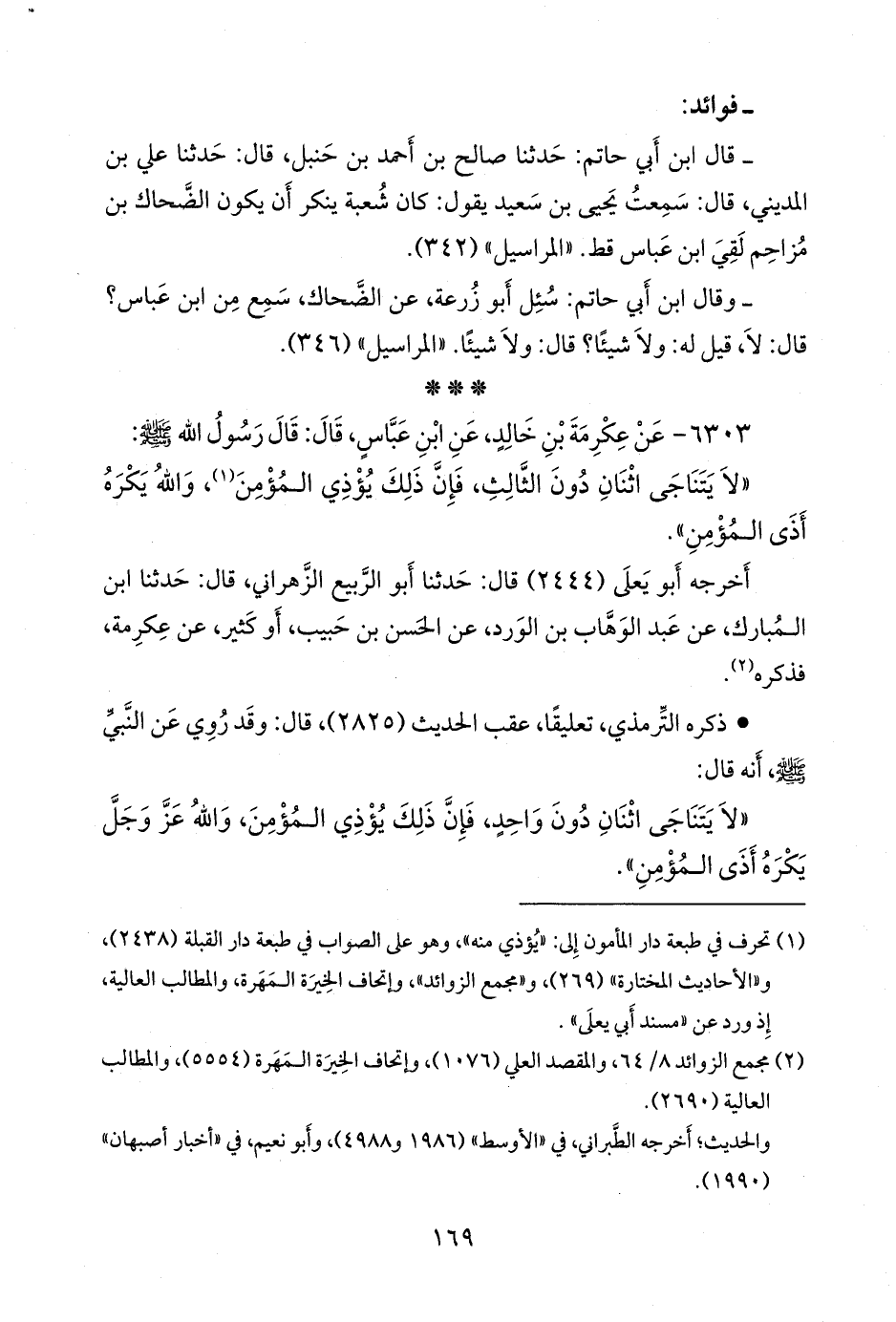 «لا يتناجى اثنان دون واحد، فإن ذلك يؤذي المؤمن، والله عز وجل يكره أذى المؤمن».