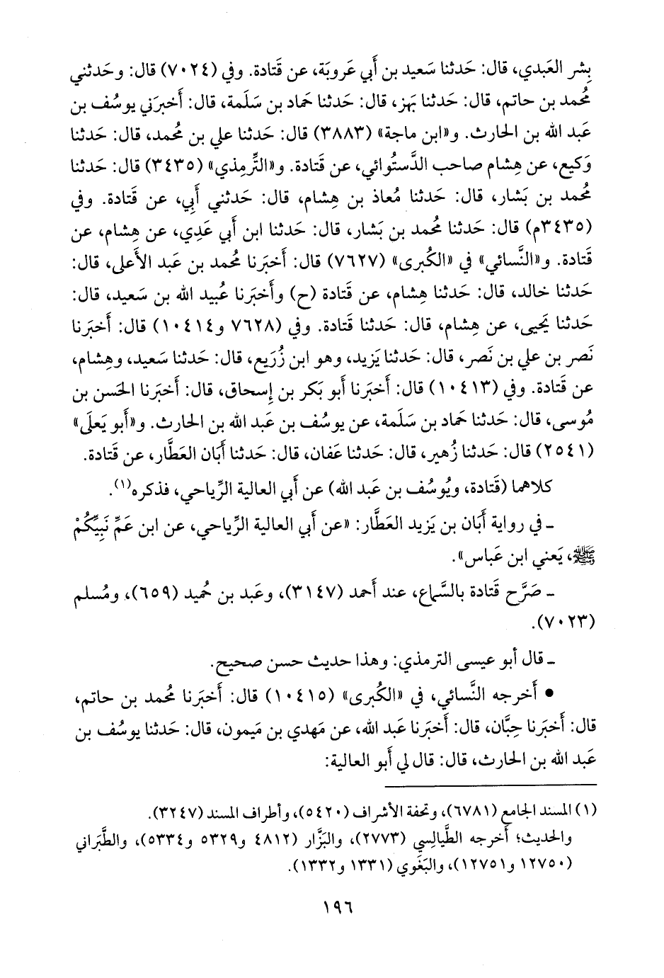 - في رواية أَبَان بن يزيد العطار: «عن أبي العالية الرياحي، عن ابن عم نبيكم صَلى الله عَليه وسَلم يعني ابن عباس».