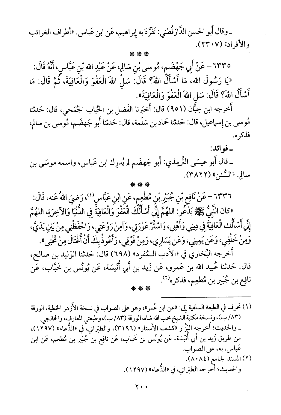 - وقال المِزِّي، بعد أَن نقل كلام أَبي حاتم: وكذلك قال جعفر بن محمد الفريابي وغيره، أن عُبيد الله بن عبد الله الذي روى موسى بن سالم عنه، عن ابن عباس، هو عُبيد الله بن عبد الله بن عباس. «تهذيب الكمال» ٢٩/ ٦٥.