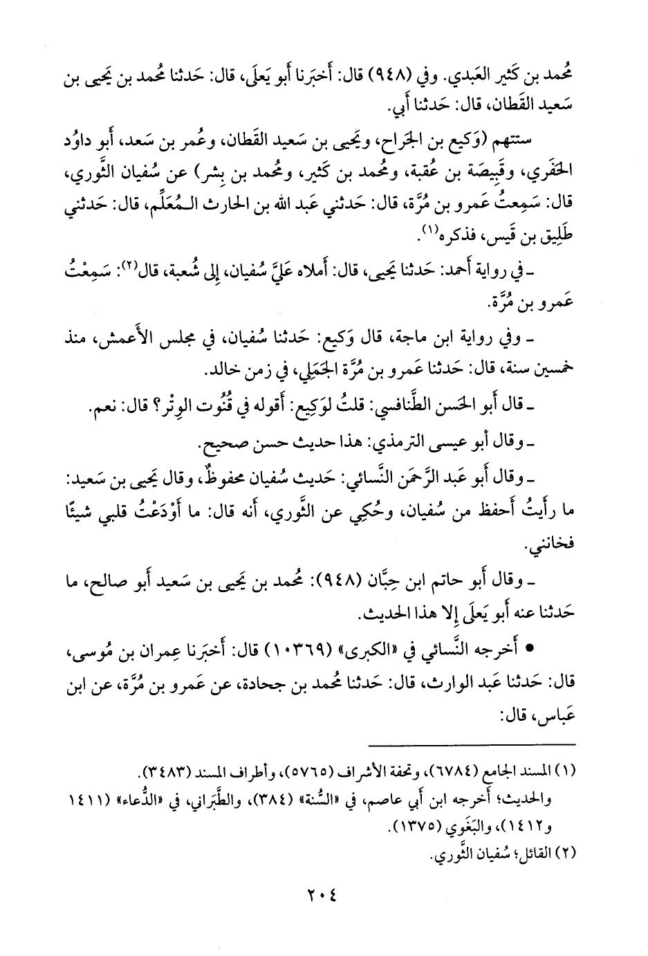 - وفي رواية ابن ماجة, قال وكيع: حدثنا سفيان, في مجلس الأعمش, منذ خمسين سنة, قال: حدثنا عَمرو بن مُرَّة الجملي, في زمن خالد.