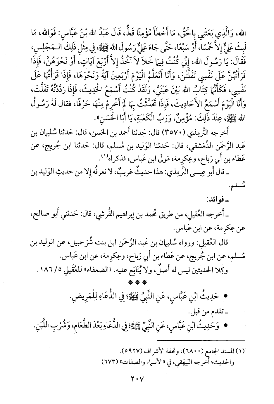 - قال التِّرمِذي: هذا حديثٌ غريبٌ، لا نعرفه إلا من حديث الوليد بن مسلم.