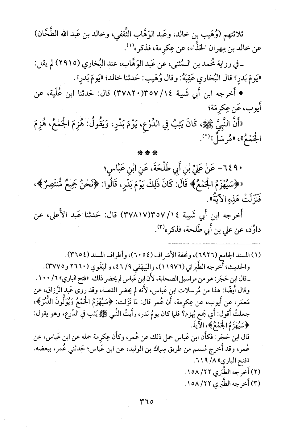 - في رواية محمد بن المثنى، عن عبد الوَهَّاب، عند البخاري (٢٩١٥) لم يقل: «يوم بدر» قال البخاري عقبه: وقال وهيب: حدثنا خالد؛ «يوم بدر».