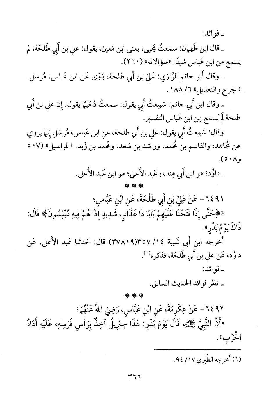 - وقال أَبو حاتم الرازي: علي بن أَبي طلحة، روى عن ابن عباس، مُرسل. «الجرح والتعديل» ٦/ ١٨٨.