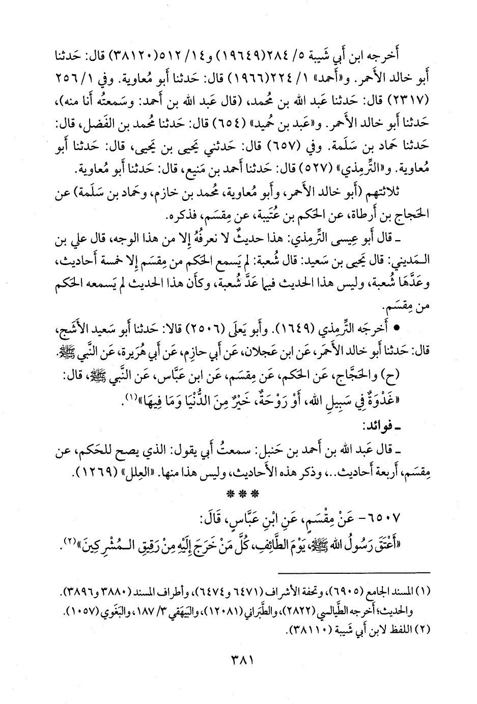 ثلاثتهم (أَبو خالد الأحمر، وأَبو معاوية محمد بن خازم، وحماد بن سلمة) عن الحجاج بن أَرطَاة، عن الحكم بن عتيبة، عن مِقسَم، فذكره.