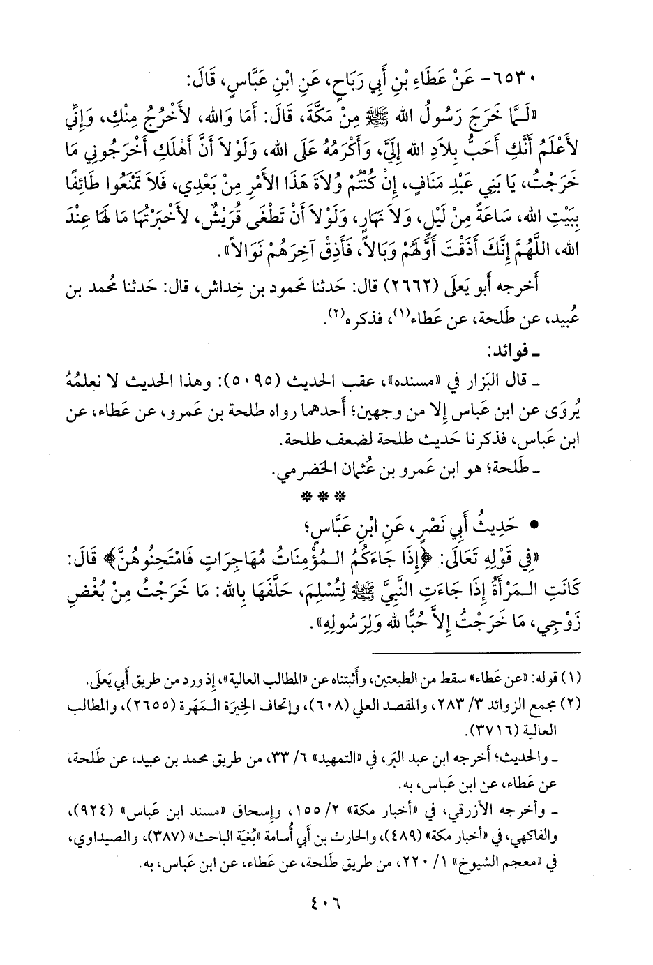 (¬٢) المسند الجامع (٦٩٥٢)، ومَجمَع الزوائد ٦/ ٣٩ و ٧/ ١٢٣، وإتحاف الخِيرَة المَهَرة (٥٨٥٨)، والمطالب العالية (٣٧٥٤).
