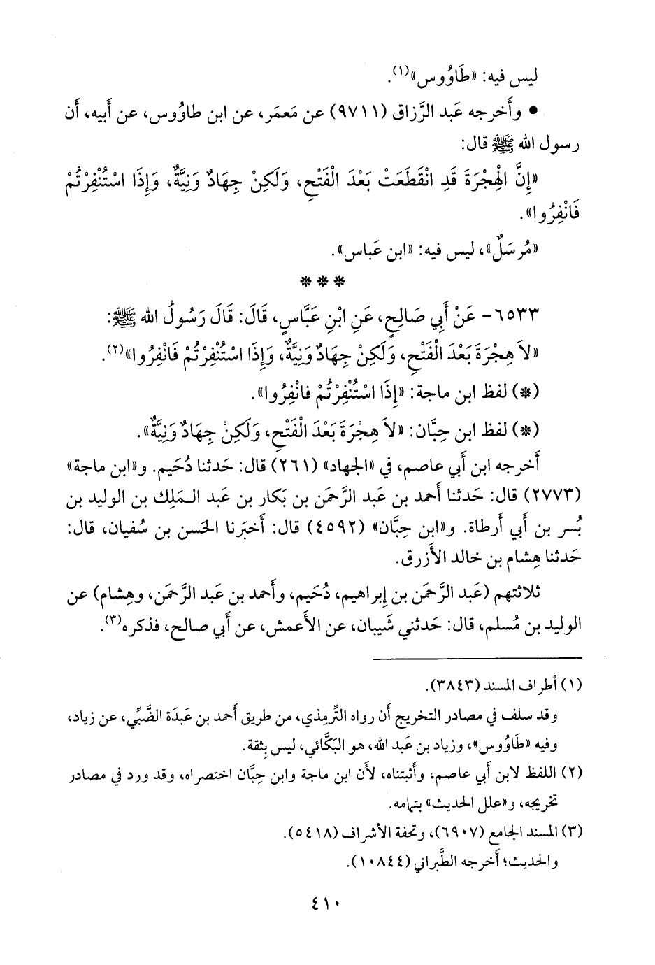 - لفظ ابن حبان: «لا هجرة بعد الفتح، ولكن جهاد ونية».