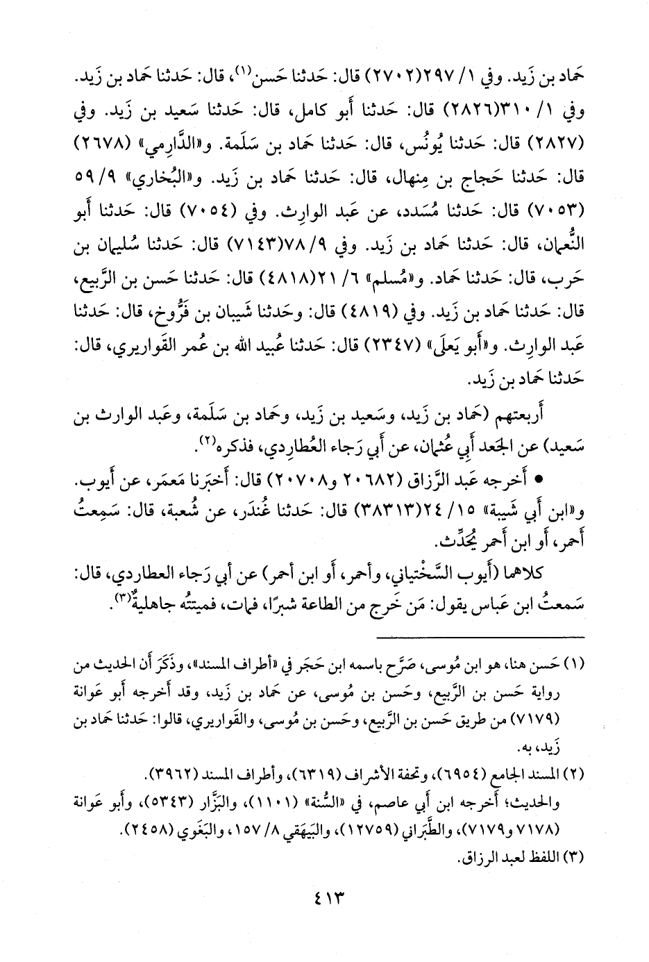 و «مسلم» ٦/ ٢١ (٤٨١٨) قال: حدثنا حسن بن الربيع، قال: حدثنا حماد بن زيد. وفي (٤٨١٩) قال: وحدثنا شَيبان بن فَرُّوخ، قال: حدثنا عبد الوارث. و «أَبو يَعلى» (٢٣٤٧) قال: حدثنا عُبيد الله بن عمر القواريري، قال: حدثنا حماد بن زيد.