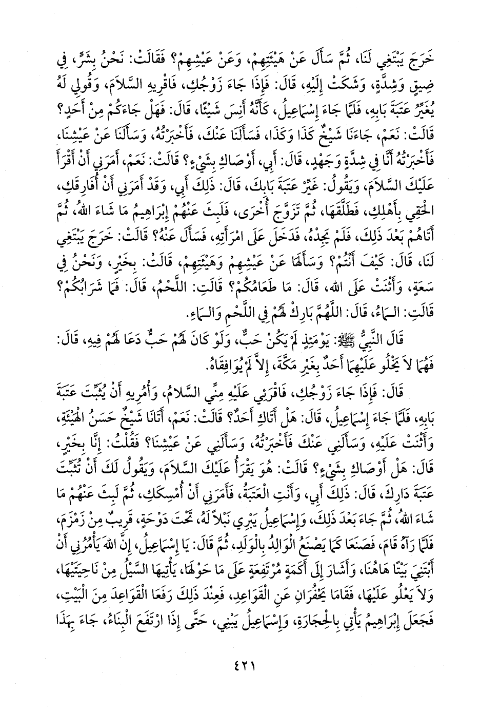 الحجر، فوضعه له، فقام عليه وهو يبني، وإسماعيل يناوله، وهما يقولان: {ربنا تقبل منا إنك أنت السميع العليم} فجعلا يبنيان حتى يدورا حول البيت، وهما يقولان: {ربنا تقبل منا إنك أنت السميع العليم}».