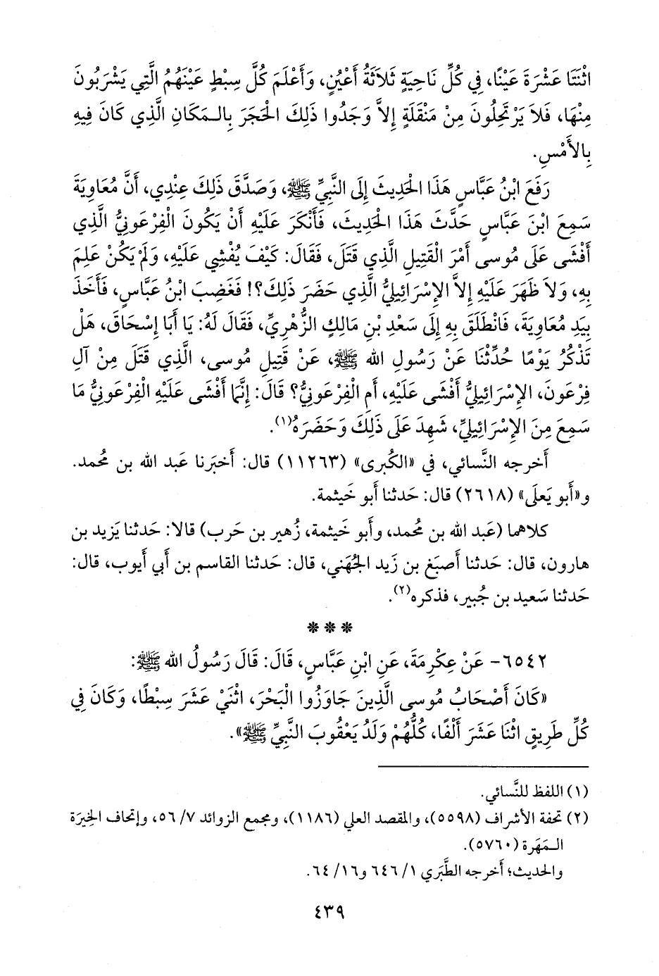 «كان أصحاب موسى الذين جاوزوا البحر، اثني عشر سبطا، وكان في كل طريق اثنا عشر ألفا، كلهم ولد يعقوب النبي صَلى الله عَليه وسَلم».