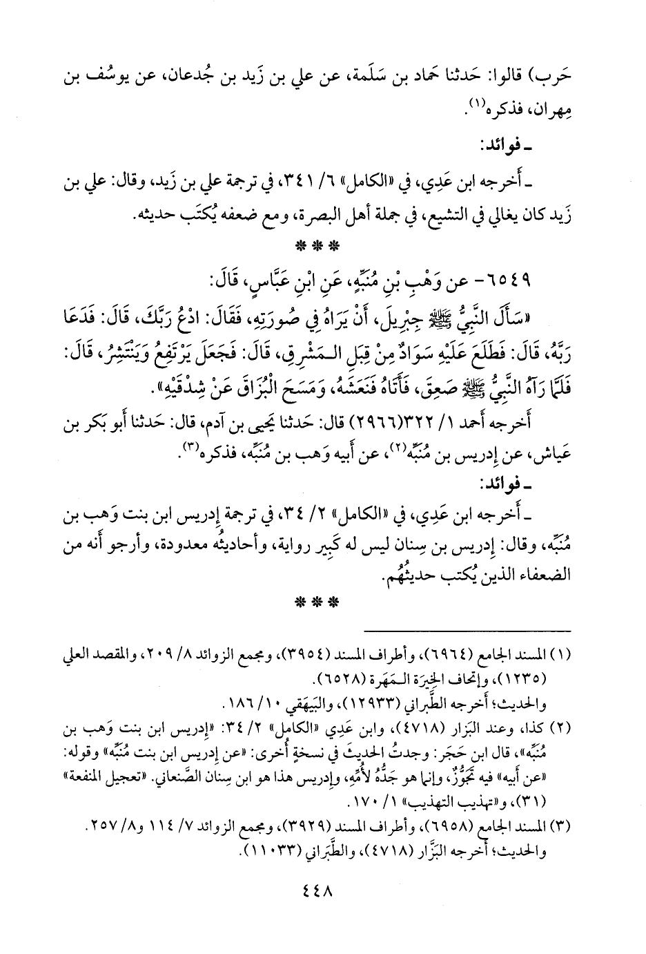 (¬٢) المسند الجامع (٦٩٥٨)، وأطراف المسند (٣٩٢٩)، ومَجمَع الزوائد ٧/ ١١٤ و ٨/ ٢٥٧.