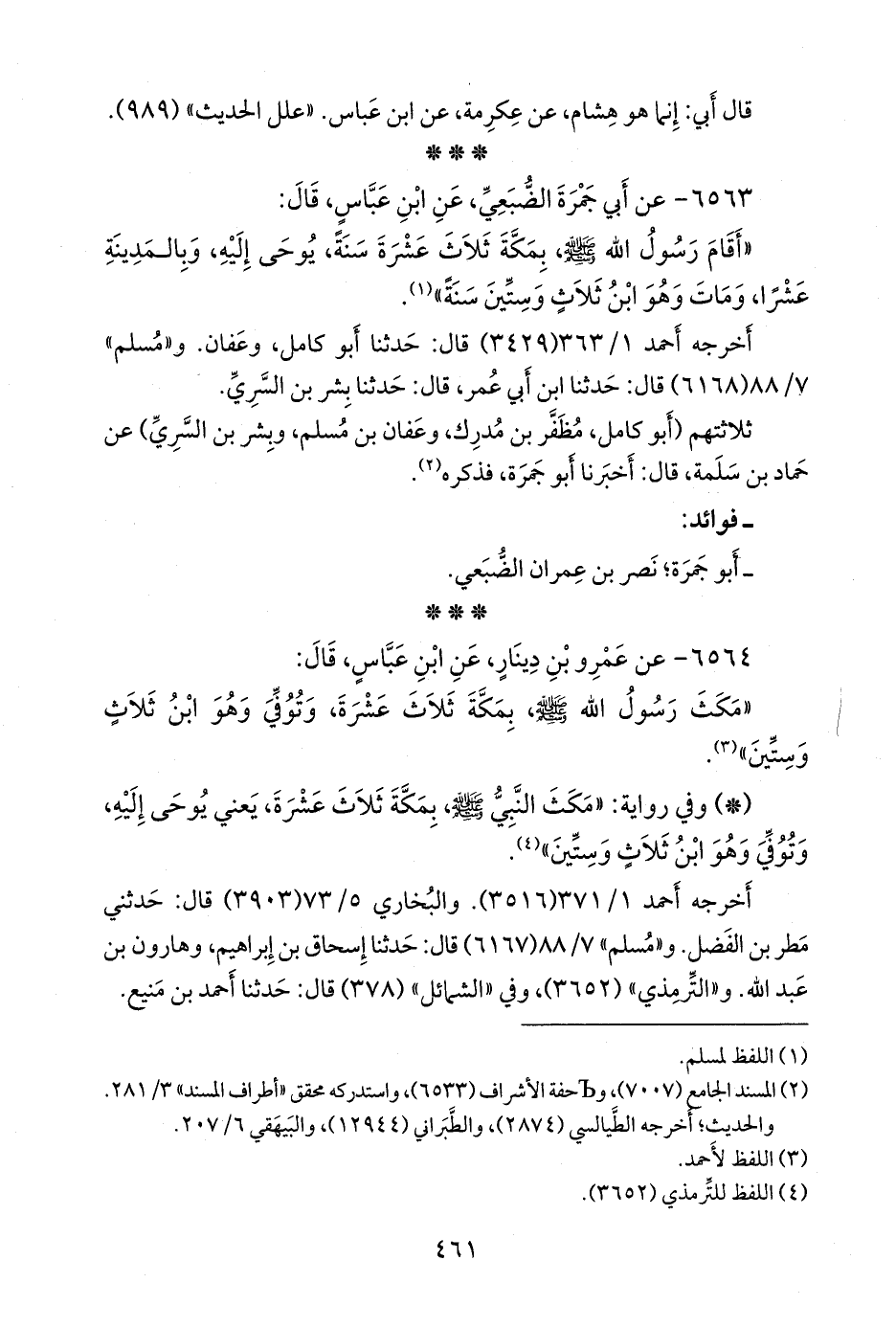 - وفي رواية: «مكث النبي صَلى الله عَليه وسَلم بمكة ثلاث عشرة، يعني يوحى إليه، وتوفي وهو ابن ثلاث وستين» (¬٢).