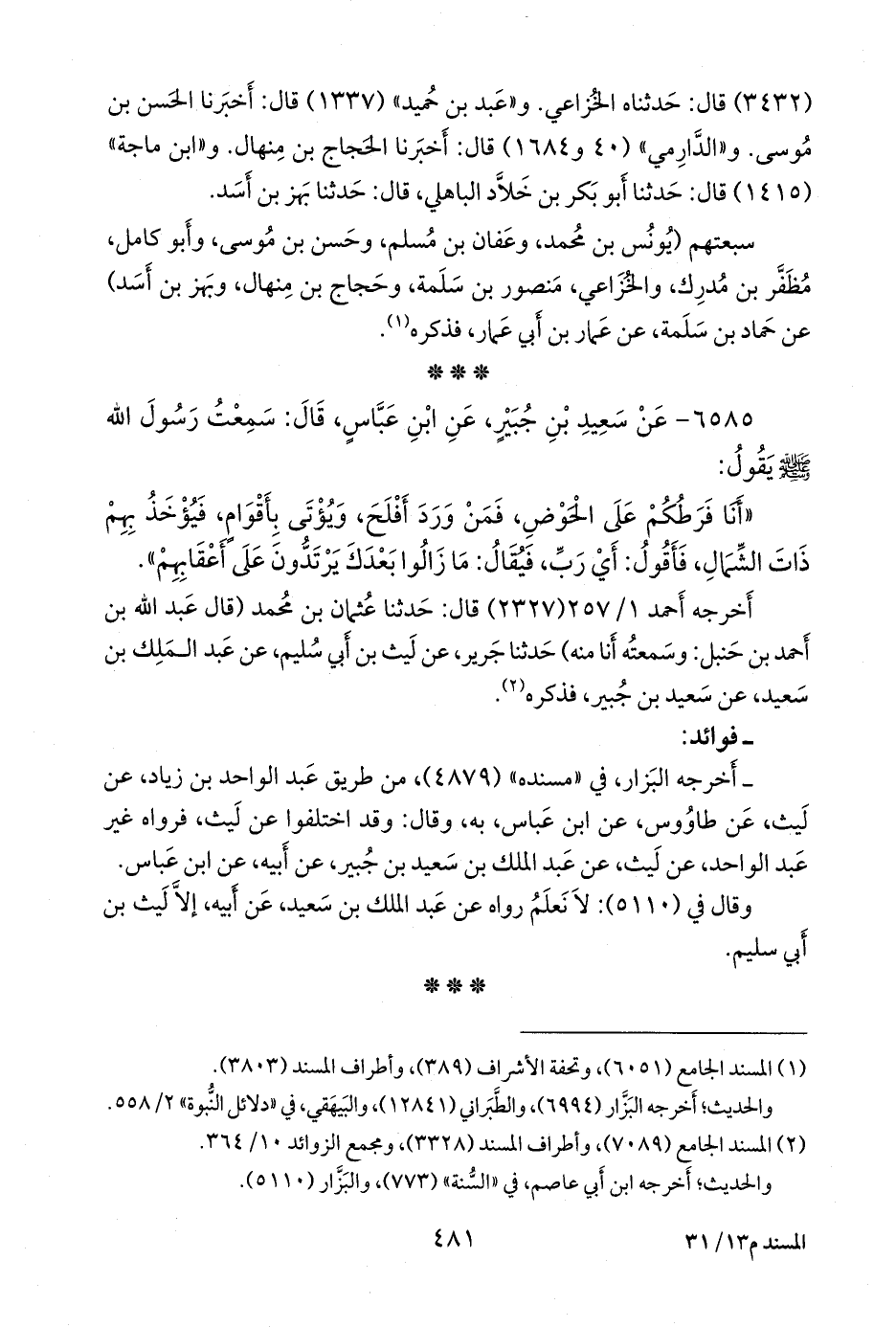 (¬١) المسند الجامع (٧٠٨٩)، وأطراف المسند (٣٣٢٨)، ومَجمَع الزوائد ١٠/ ٣٦٤.