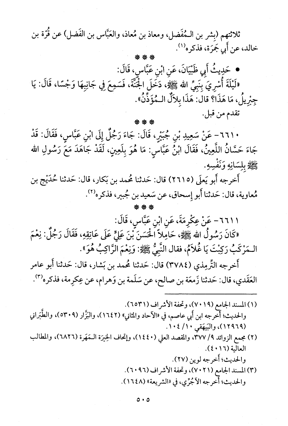 (¬١) مَجمَع الزوائد ٩/ ٣٧٧، والمقصد العَلي (١٤٤٠)، وإتحاف الخِيرَة المَهَرة (٦٨٢٦)، والمطالب العالية (٤٠١٦).