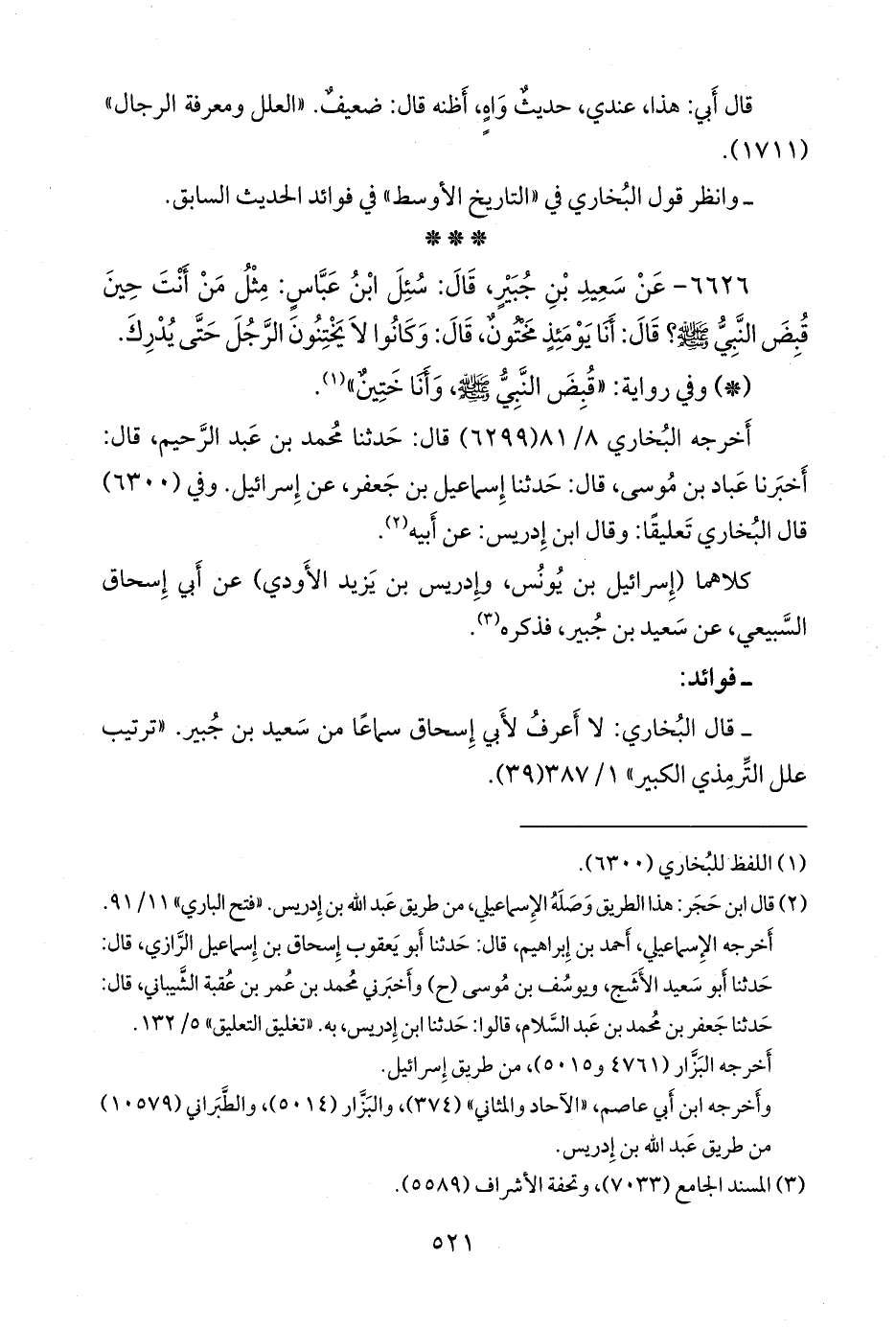 (¬٢) قال ابن حجر: هذا الطريق وصله الإسماعيلي، من طريق عبد الله بن إدريس. «فتح الباري» ١١/ ٩١.