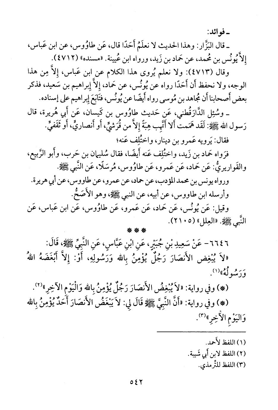 وقيل: عن يونس، عن حماد، عن عَمرو، عن طاووس، عن ابن عباس، عن النبي صَلى الله عَليه وسَلم. «العلل» (٢١٠٥).