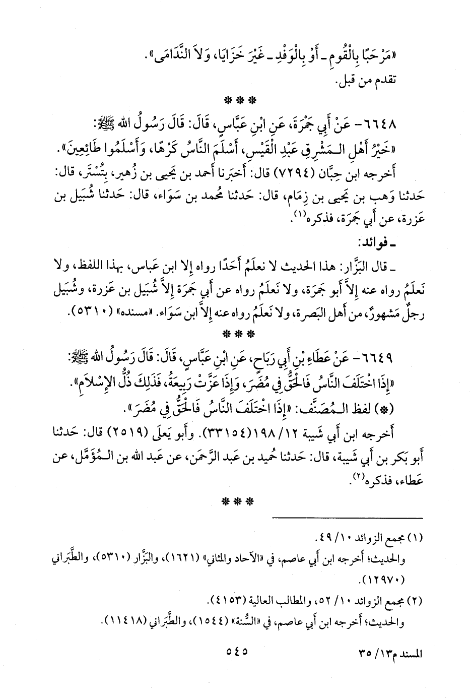 ٦٦٤٨ - عن أبي جَمرة، عن ابن عباس، قال: قال رسول الله صَلى الله عَليه وسَلم: