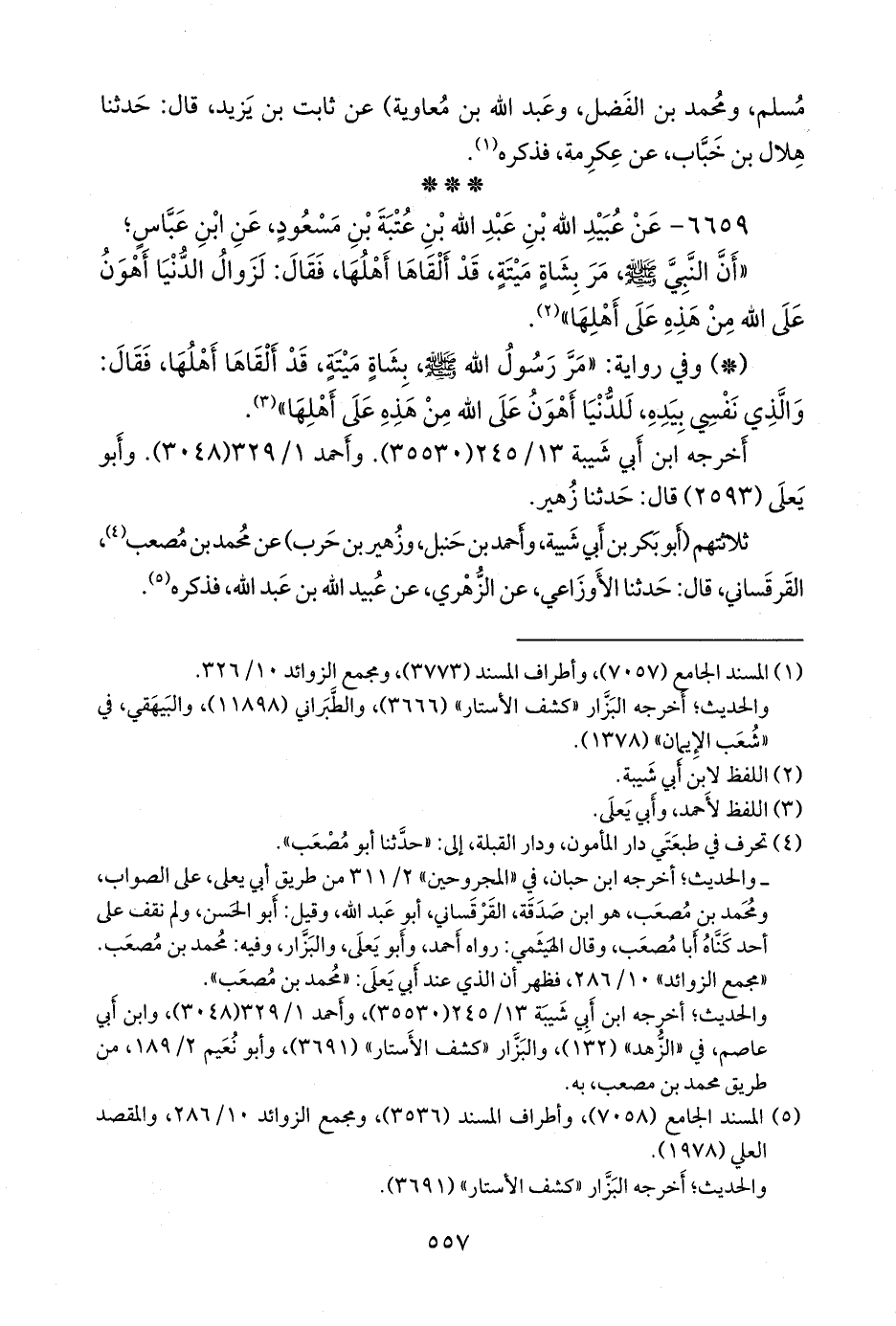 (¬٤) المسند الجامع (٧٠٥٨)، وأطراف المسند (٣٥٣٦)، ومَجمَع الزوائد ١٠/ ٢٨٦، والمقصد العَلي (١٩٧٨).