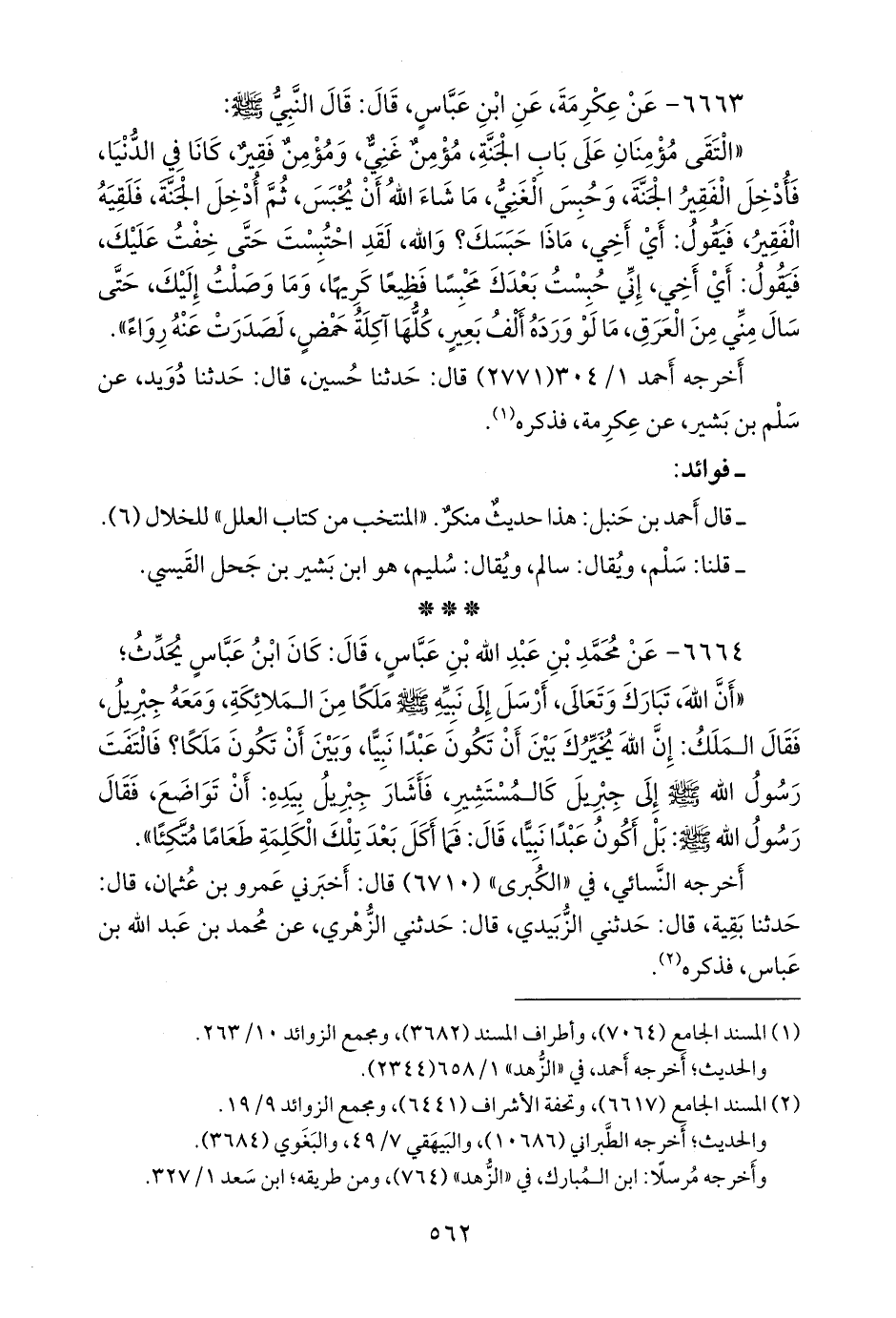٦٦٦٣ - عن عِكرمة مولى عبد الله بن عباس، عن عبد الله بن عباس، قال: قال النبي صَلى الله عَليه وسَلم: