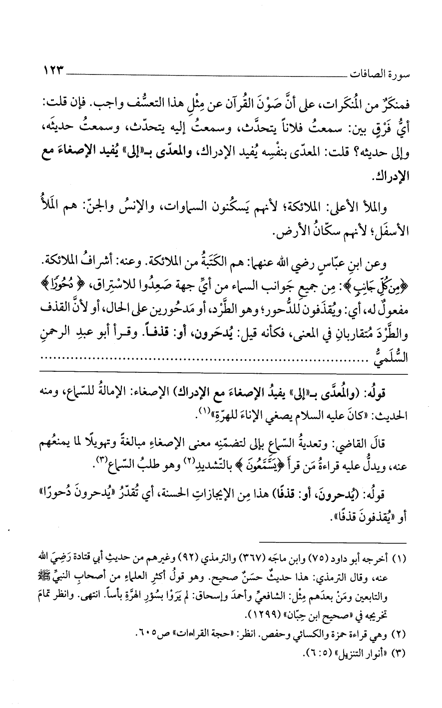 فمنكر من المنكرات، على أن صون القرآن عن مثل هذا التعسف واجب. فإن قلت: أي فرق بين: سمعت فلانًا يتحدث، وسمعت إليه تحدث، وسمعت حديثه، وإلى حديث؟ قلت: المعدى بنفسه يفيد الإدراك، والمعدى بـ"إلى" يفيد الإصغاء مع الإدراك.