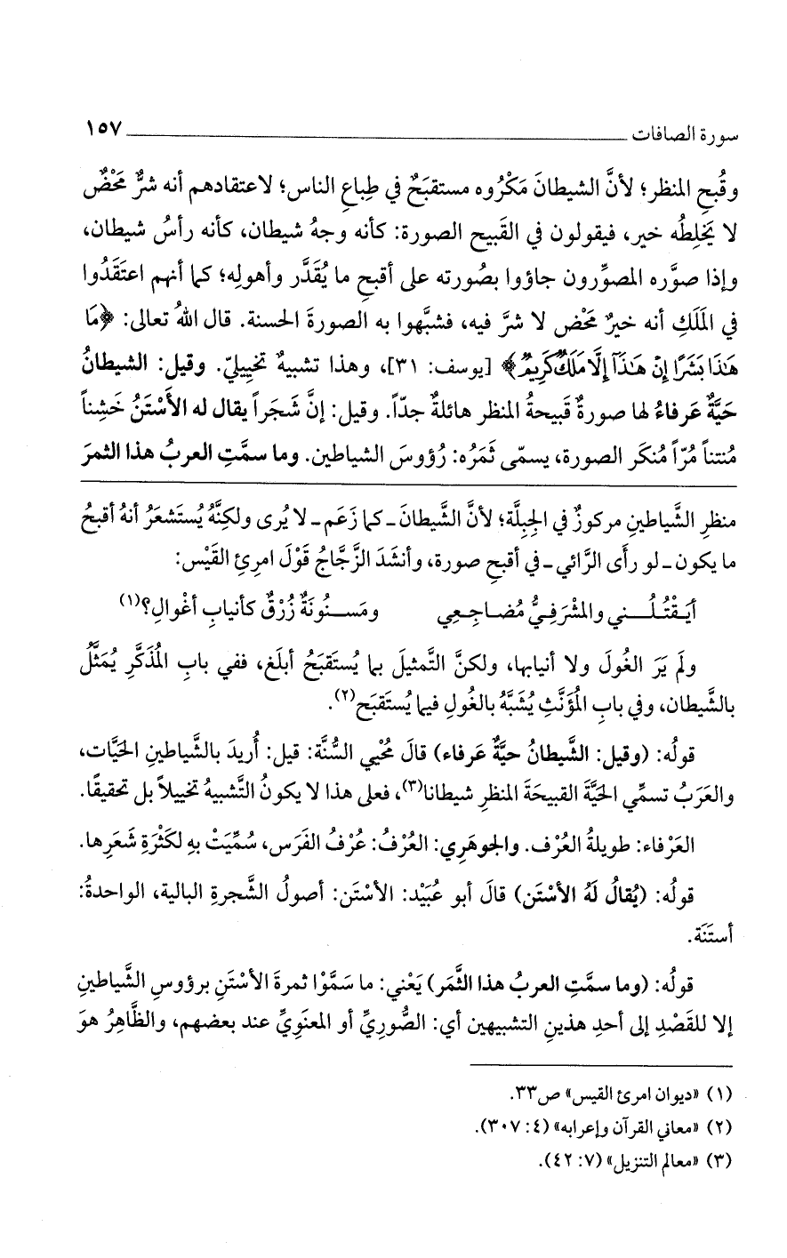 قوله: (وما سمت العرب هذا الثمر) يعني: ما سموا ثمرة الأستن برؤوس الشياطين إلا للقصد إلى أحد هذين التشبيهين أي: الصوري أو المعنوي عند بعضهم، والظاهر هو