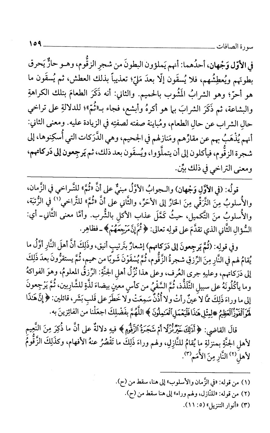 وفي قوله: (ثم يرجعون إلى دركاتهم) إشعار بترتيب أنيق، وذلك أن أهل النار أول ما يقام لهم في النار من الرزق شجرة الزقوم، ثم يسقون شوبًا من حميم، ثم يستقرون بعد ذلك إلى دركاتهم، وعليه جرى العرف، وعلى هذا نزل أهل الجنة: الرزق المعلوم، وهو الفواكه وما يأكلونه على سبيل التلذذ، ثم السقي من كأس معين بيضاء لذة للشاربين، ثم يرجعون إلى ما وراء ذلك مما لا عين رأت ولا أذن سمعت ولا خطر على قلب بشر، قائلين: {إنَّ هَذَا لَهُوَ الفَوْزُ العَظِيمُ * لِمِثْلِ هَذَا فَلْيَعْمَلِ العَامِلُونَ} اللهم بفضلك اجعلنا من الفائزين به.