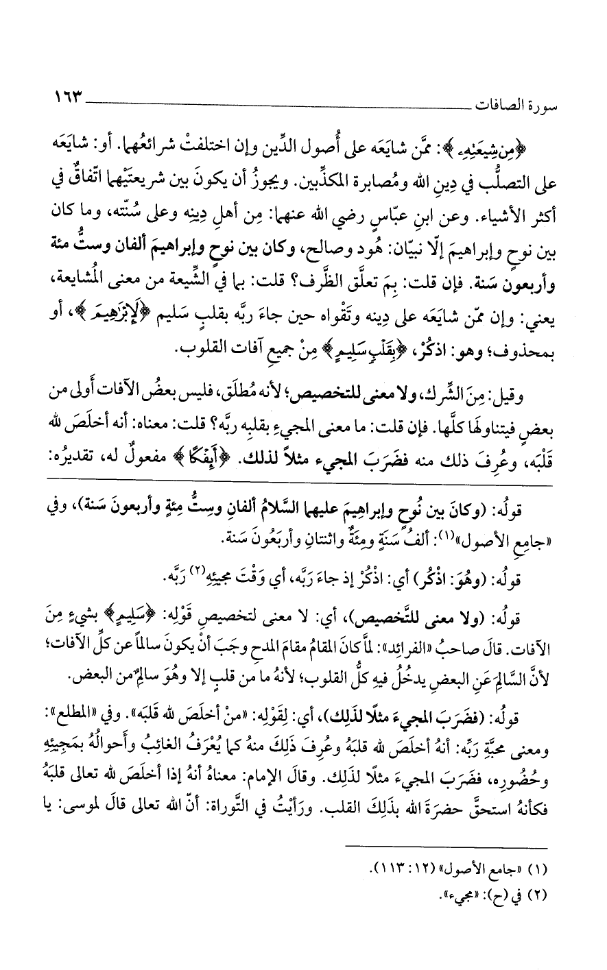{مِن شِيعَتِهِ}: ممن شايعه على أصول الدين وإن اختلفت شرائعهما. أو: شايعه على التصلب في دين الله ومصابرة المكذبين. ويجوز أن يكون بين شريعتيهما اتفاق في أكثر الأشياء. وعن ابن عباس رضي الله عنهما: من أهل دينه وعلى سنته، وما كان بين نوح وإبراهيم إلا نبيان: هود صالح، وكان بين نوح وإبراهيم ألفان وست مئة وأربعون سنة. فإن قلت: بم تعلق الظرف؟ قلت: بما في الشيعة من معنى المشايعة، يعني: وإن ممن شايعه على دينه وتقواه حين جاء ربه بقلب سليم {لإبْرَاهِيمَ}، او بمحذوف؛ وهو: اذكر، {بِقَلْبٍ سَلِيمٍ} من جميع آفات القلوب.