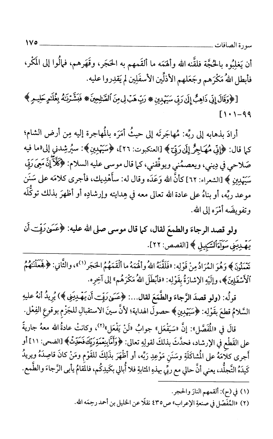 قوله: (ولو قصد الرجاء والطمع لقال ... : {عَسَى رَبِّي أَنْ يَهْدِيَنِي} يريد أنه عليه السلام قطع بقوله {سَيَهْدِينِ} حصول الهداية؛ لأن سين الاستقبال للجزم بوقوع الفعل.