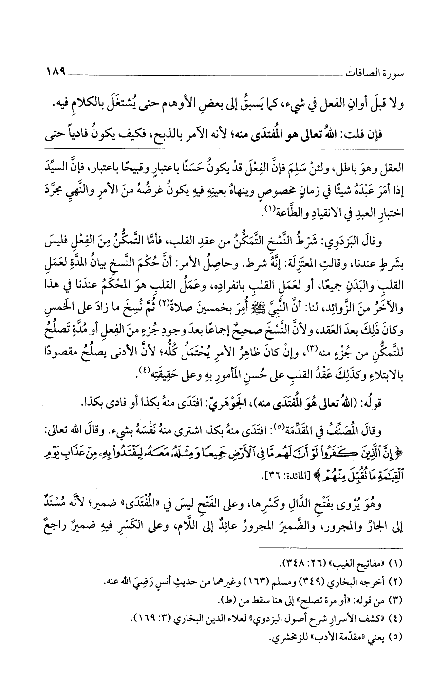 ولا قبل أو أن الفعل في شيء، كما يسبق إلى بعض الأوهام حتى يشغل بالكلام فيه، فإن قلت: الله تعالى هو المفتدى منه؛ لأنه الآمر بالذبح، فكيف يكون فاديًا حتى