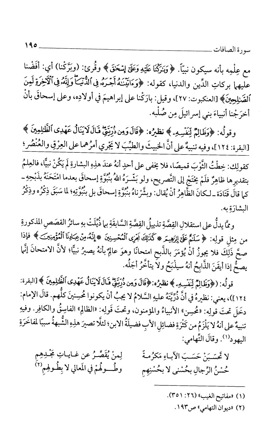 كقولك: خطت الثوب قميصًا، فلا يخفى على أحد أنه عند هذه البشارة لم يكن نبيًا، فالعلم بتقديرها ظاهر لم يحتج إلى التصريح، ولو بشره الله بنبوة إسحاق بعدما امتحنه بذبحه- كما قال قتادة- لكان الظاهر أن يقال: وبشرناه بنبوة إسحاق بل بنبوته؛ لما سبق ذكره وذكر البشارة به.